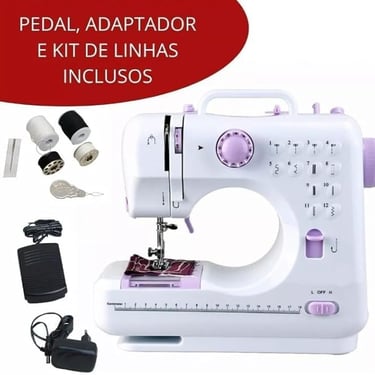 Mini Máquina de Costura Portátil Bivolt 12 Pontos Ajustáveis, Cortador de Linha e Controle de Velocidade