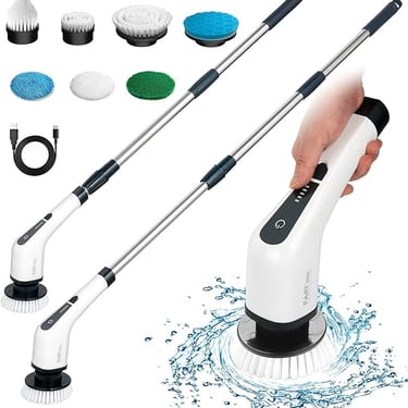 Compre AgoraEsfregador giratório elétrico, escova de limpeza sem fio com 7 cabeças de escova substituíveis