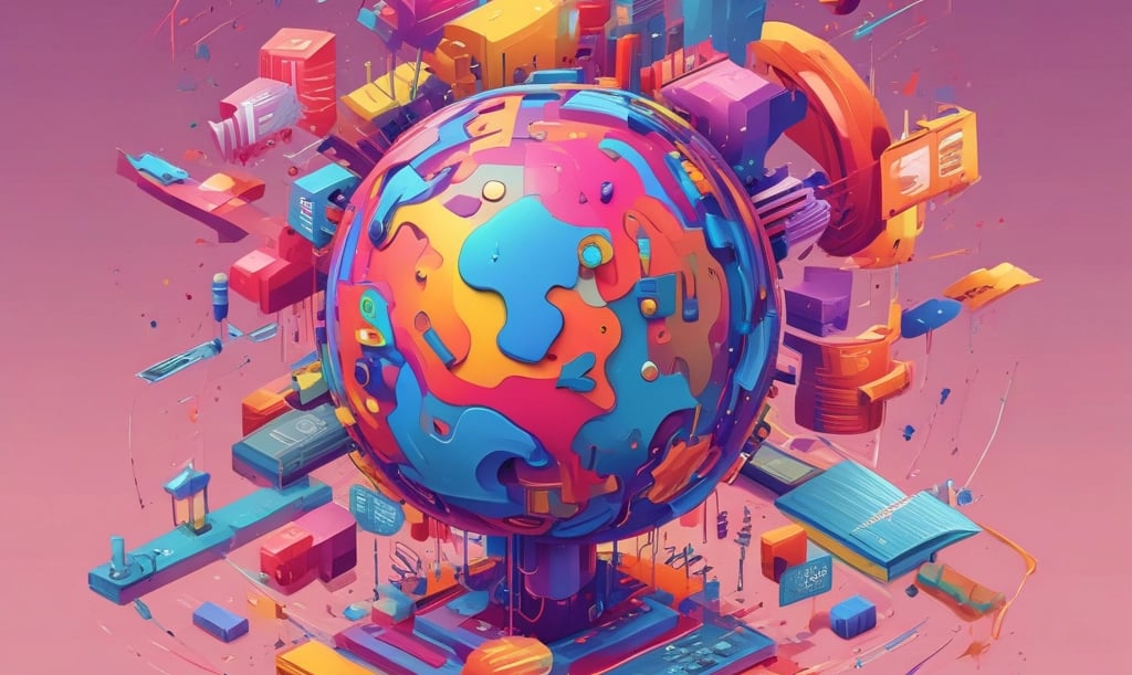 A vibrant street festival scene with colorful decorations and joyful people dancing.